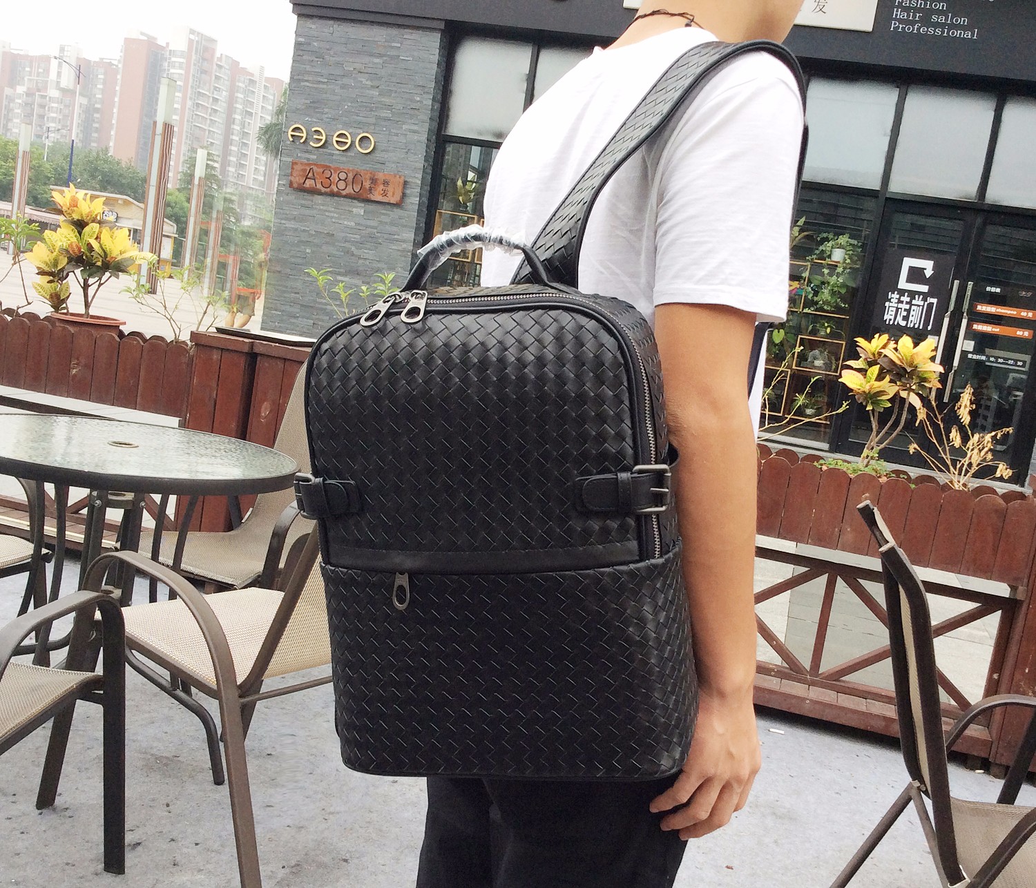 黑色BV宝缇嘉进口小牛皮男士双肩包
